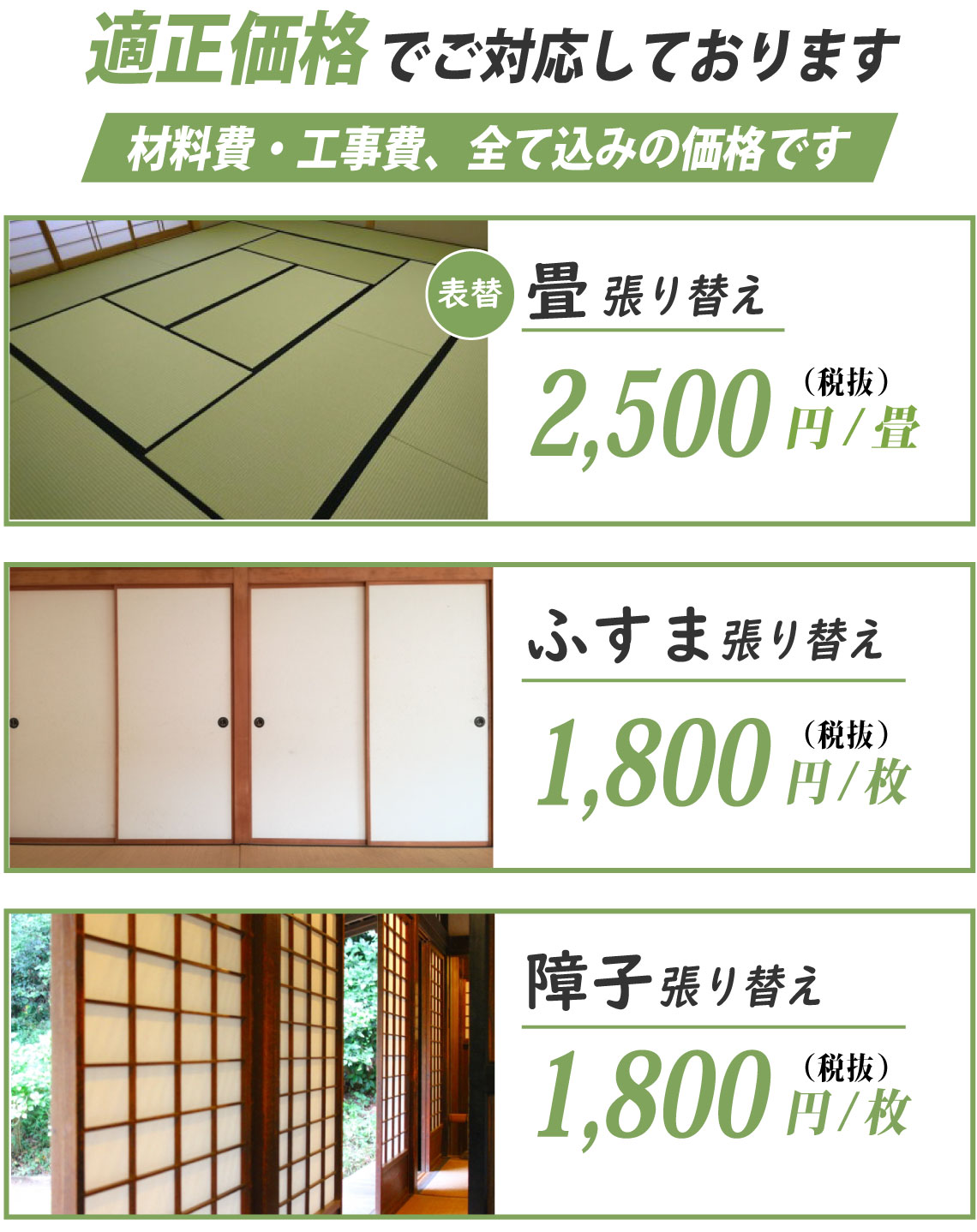 新城市 畳・襖・障子の交換費用について
